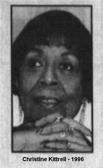 A few late career appearances: On September 28, 1986, Christine Kittrell Furlough was one of the entertainers at the Buckeye Lake Music Center. September 4, 1988 found her part of the Musicians' Reunion Benefit Show Of 1988 at the Elks Lodge in Nashville. On May 29, 1993, she sang with the Joint Rockers at the Riverfront Amphitheater in Newark, Ohio. And, on July 27, 1996, she was part of an AIDS fund-raiser at Riverside Park in Zanesville, Ohio, singing with Sean Carney and the Nite Owlz.