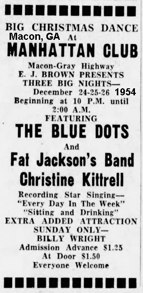 December 24-26, 1954 found Christine, along with Eddie Harris & the Blue Dots, at the Manhattan Club in Macon, Georgia. Billy Wright joined the show on the last day.