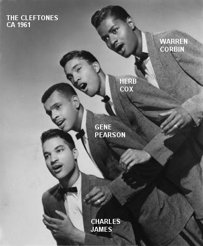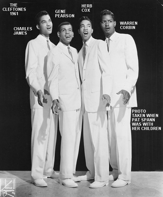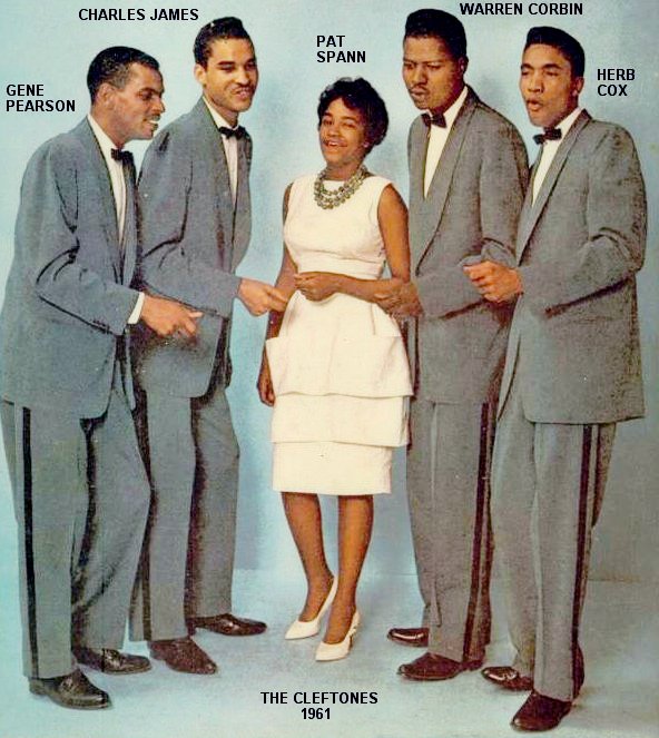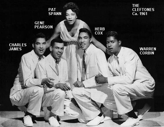 In late 1959, with nothing much happening with the group and their sound changing, Berman Patterson quit to join the Department Of Corrections. Gene Pearson had, on several occasions, expressed an interest in joining the Cleftones (remember that he and Herb had lived in the same building), and that was reiterated when he, as a Marine, attended a Cleftones show. Now he'd been discharged and he showed up at a couple of rehearsals. The guys had also been kicking around adding a girl to the group, since the female sound was big at the time. Gene said he knew one who'd fit perfectly. At this point, Gene was asked to join and he then brought in Georgianna "Pat" Spann. Therefore, by 1960, the Cleftones were Herb Cox, Charles James, Warren Corbin, Gene Pearson, and Pat Spann.