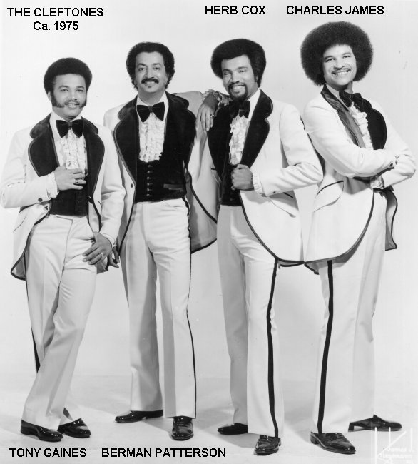 Gene Pearson lasted until the mid-70s, but then, with the oldies revivals really heating up, re-formed his Rivileers group and started promoting shows. To replace him, around 1975, Herb's cousin, second tenor Tony Gaines, was brought into the Cleftones. He had been with a Platters group that had toured the Middle East. Originally, it was Herb, Charles, Berman, and Tony, but Berman finally dropped out and the Cleftones became a trio, appearing that way for at least ten years.
