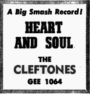 June 1961 saw the first Cleftones LP, Heart And Soul. It contained three of their older hits, along with some more modern tunes and a few things that never made it to singles at all. On June 14th, the Cleftones sang "Heart And Soul" on American Bandstand.