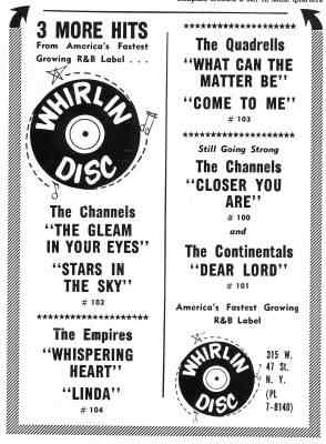 While Earl Lewis gives credit to the Continentals for his group's sound, Bobby Robinson was more excited about the potential of the Channels. Thus, he released "The Closer You Are" in August, while taking his time with "Dear Lord." Both would be issued on Robinson's new Whirlin' Disc label (which he owned in partnership with Jubilee's Jerry Blaine; this is why reissues were on Port, run by Jerry Blaine's son, Steve, who was only 17 when he started Port in 1957).