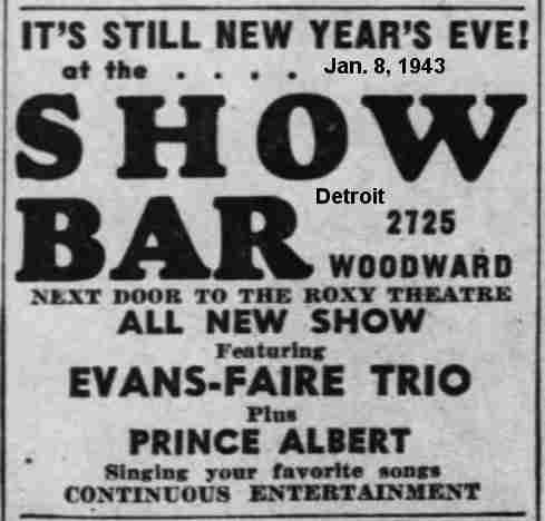 The Evans-Faire Trio was at Detroit's Show Bar on January 8, 1943. They were still there two weeks later.