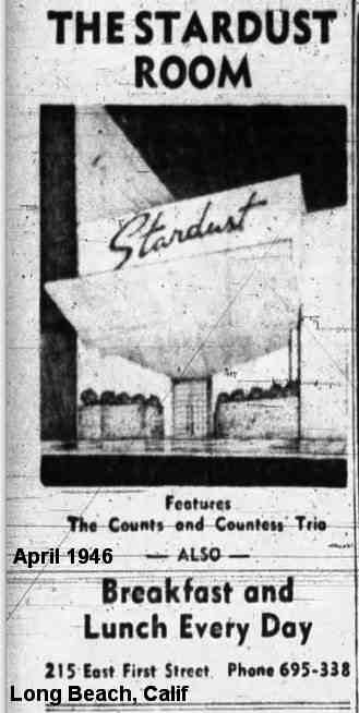 A March 17 1946 ad for the Stardust Room in Long Beach, California said the venue would open soon "With the Well Known Counts and Countess Trio". They first appear in the club's April 4 ad. The last time they're mentioned was April 12.