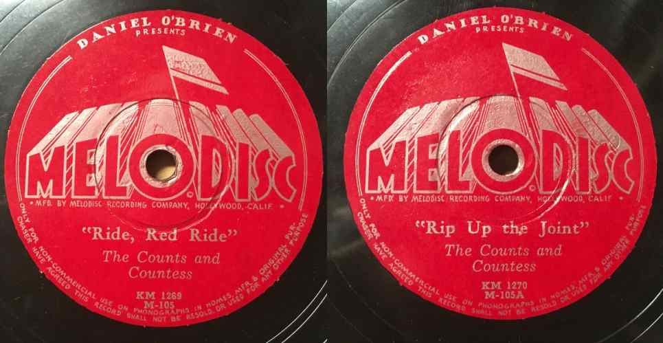 While in Los Angeles, they recorded four known tunes for Daniel O'Brien's recently formed Melodisc Records: "Ride, Red Ride", "Rip Up The Joint", "You Knock Me Out", and "Who-ee, My, My!". All four were released on Melodisc in July, but weren't reviewed. The July 14, 1945 Billboard said: