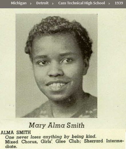 In Cass Technical High School, Alma was a member of the Mixed Chorus and the Girls' Glee Club. She also played with the King's Aces, a local big band that had saxophonist Eli "Lucky" Thompson and vibraphonist Milt Jackson.