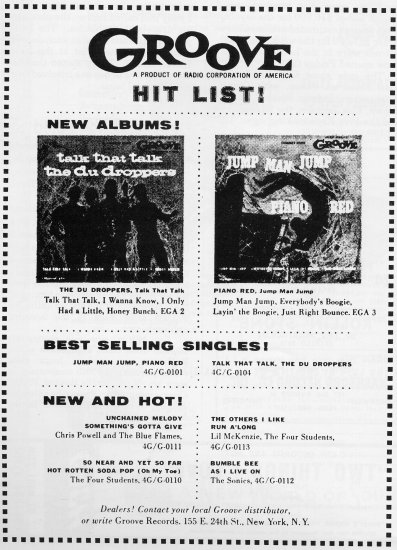 In August 1955, Groove released "Goodbye," by Piano Red and the 4 Students. Is this the Cues? I don't know; there's no indication in the RCA files. You'll see soon enough how complicated this can get.