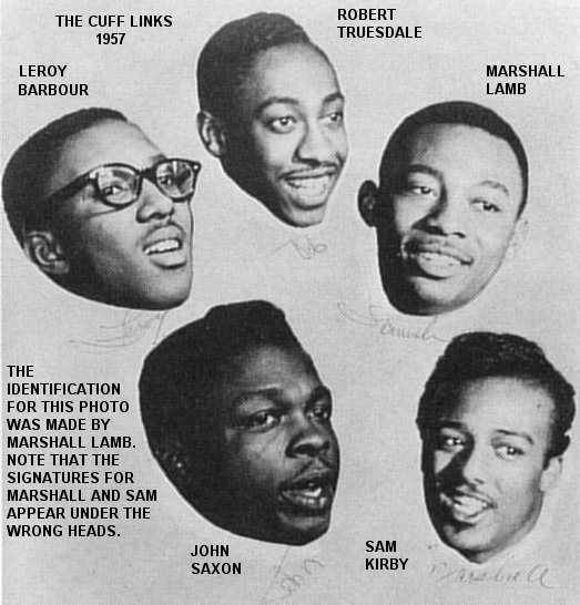 Even though the Cuff Links had taken second place in the Air Force's "Tops In Blue" 1957 talent contest, by October, the group had fallen apart. Blame the Air Force: it was transferring them all over the country. Leroy Barbour was probably the first to go; Ed Tyson came back to do some promotional tours.