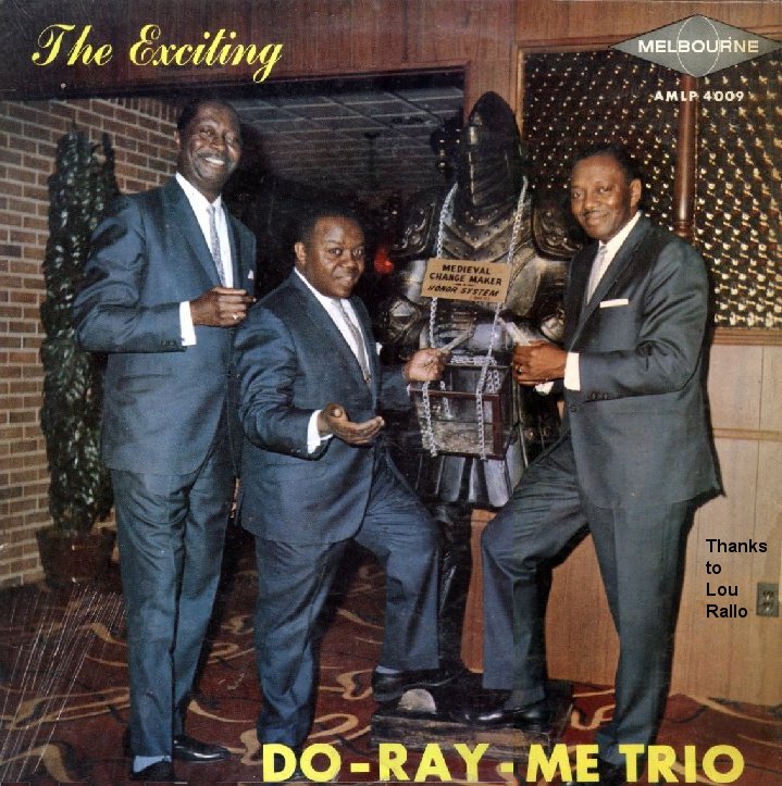 The Trio enjoyed a reputation as a professional, self-contained act, well-suited for engagements in quality supper clubs and night spots. Thus, the Do Ray Me Trio (however you spell it) can be looked on as one of the more successful vocal/instrumental combos.