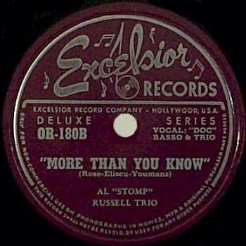 In April 1947, Apollo Records released a disk by the Al Russell Trio: "Let's Get Together"/"Let's Go Down The Old Road". These seem to have been masters that had been recorded in Los Angeles in March 1946. If so, they'd have to have been recorded for Excelsior, since the group was with them from September 1945 through August 1946. The group's masters were being sold freely during this period, and it should tell me something; I just have no idea what.