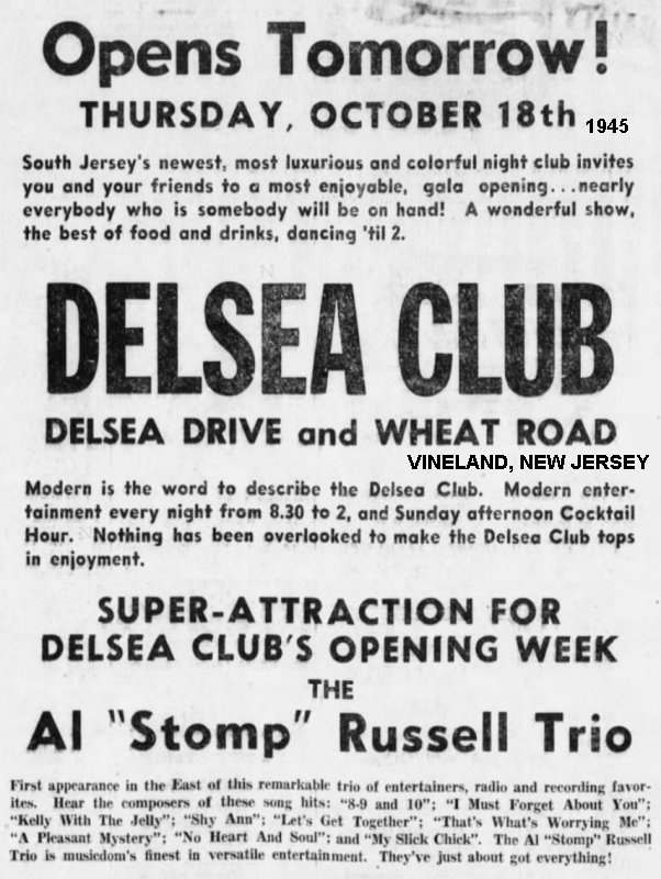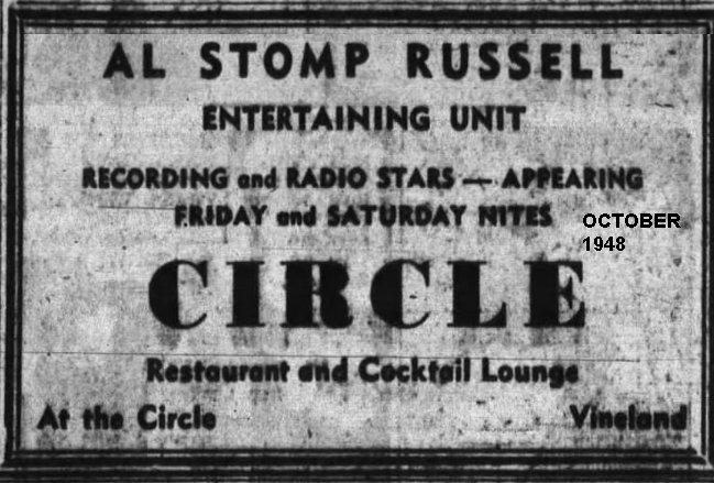 On January 31, 1948, the Do-Ray-Me Trio appeared for a week at the El Morocco in Charlotte, North Carolina; they were held over for a second week. March found them at Club 13 in Philadelphia. In spite of the name change, however, when they played Weeke's Cocktail Lounge (Atlantic City, New Jersey) in June 1948, it was as the Al Russell Trio. (This was mentioned in the June 12 Billboard.)