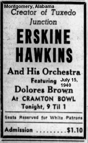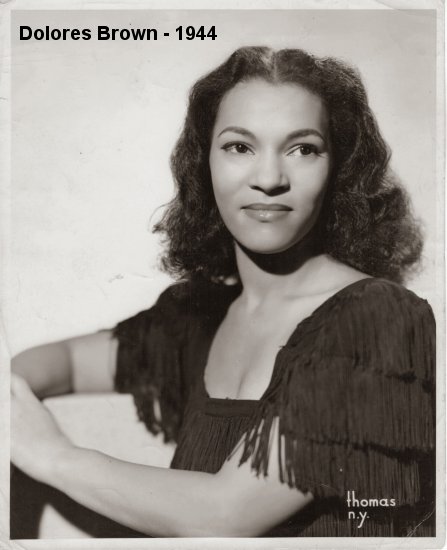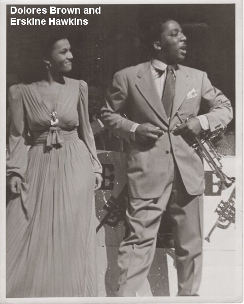 From the New York Age of August 26, 1939): "Dolores Brown, songstress with Erskine Hawkins and heart-throb of Bubber Lewis, sings most of her songs over the radio just to him and the broadcasting officials, who don't allow personal messages aren't hip."