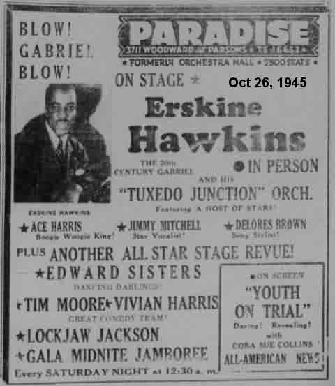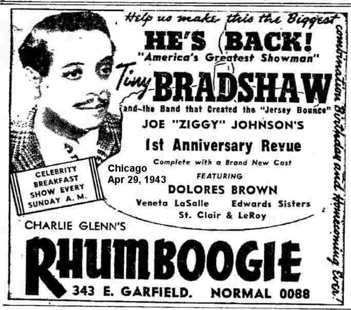 The October 16, 1941 Nashville Banner, in a little blurb about Erskine Hawkins performing at that city's Paradise Ballroom on the 21st, said his singers were Dolores Brown and Jimmy Mitchell. Was she back with him for a few performances? Nothing ever said (and she wasn't mentioned in the press again until the following June).