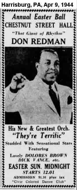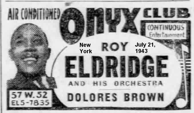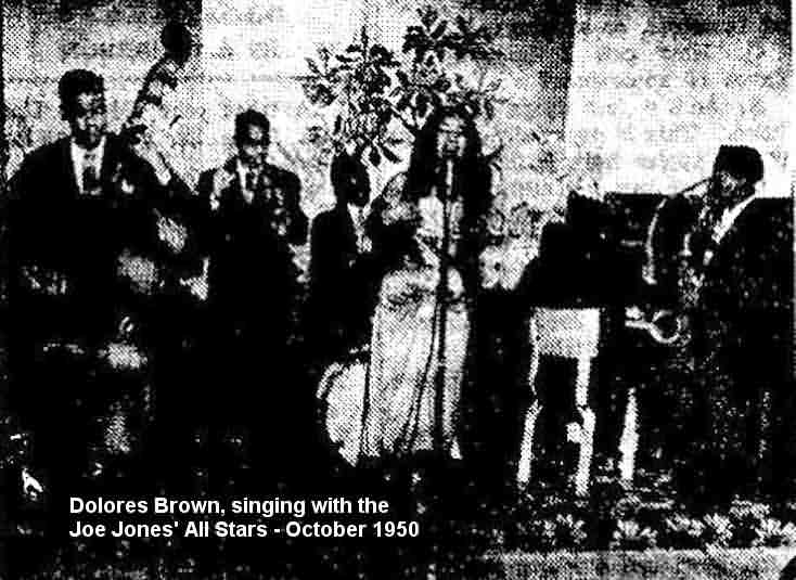 On May 6, 1946, Dolores appeared at the Academy Of Music in Philadelphia as part of the fifth All Star Jazz Concert. The blurb in the April 29 Camden Courier-Post said "Buster Harding, piano sensation, and Dolores Brown, former Erskine Hawkins vocalist, are featured with the [Roy] Eldridge band." However, I believe it was just for this performance; I can't find any evidence that she ever sang with Eldridge again.