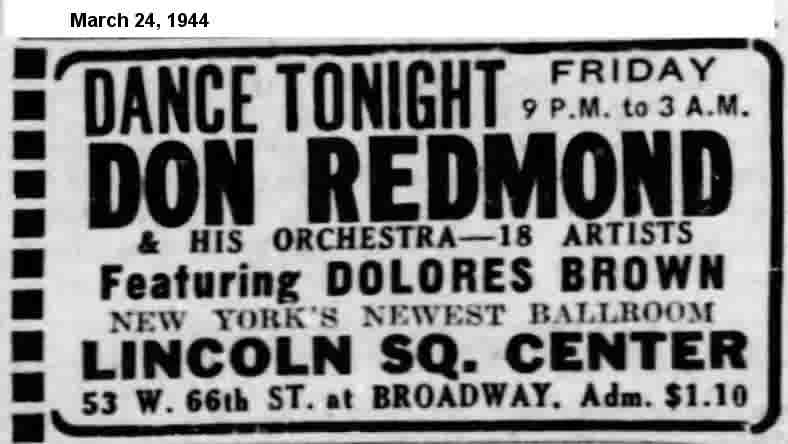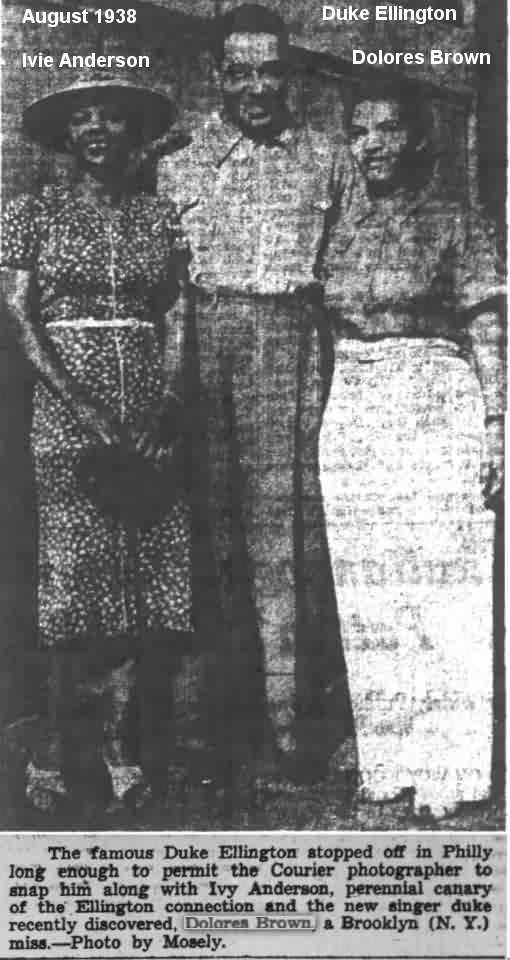When they played the Eighth Regiment Armory (Chicago) on December 8, 1938: "Between dances, the dance lovers besieged Ivy [sic], Duke, and the new vocalist Dolores Brown for autographs." (Indianapolis Recorder of December 10.)
