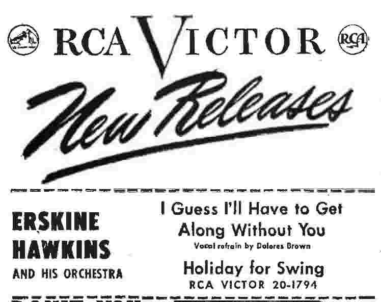[NOTE: All of Dolores Brown's vocals ended up on one side of a Hawkins release. With a single exception, there were no reviews, and few ads even mentioned them. In truth, the Erskine Hawkins unit was looked on as a great swing orchestra and several columnists thought that vocals kind of got in the way.]