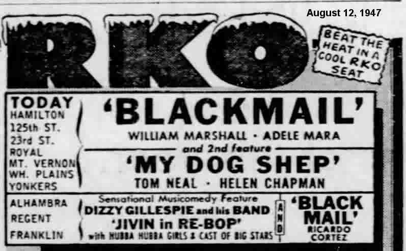 The earliest ad I can find for a showing of "Jivin' In Be-Bop" is August 12, 1947, when it was playing at the RKO Regent (Manhattan), Alhambra (Manhattan), and Franklin (Bronx), although it supposedly opened at the Regent in Brooklyn on June 29.