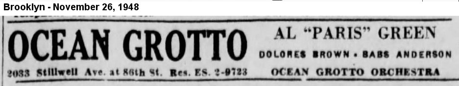 By mid-July 1948, Dolores was at the El Sino in Detroit. In late November, it was the Ocean Grotto in Brooklyn.