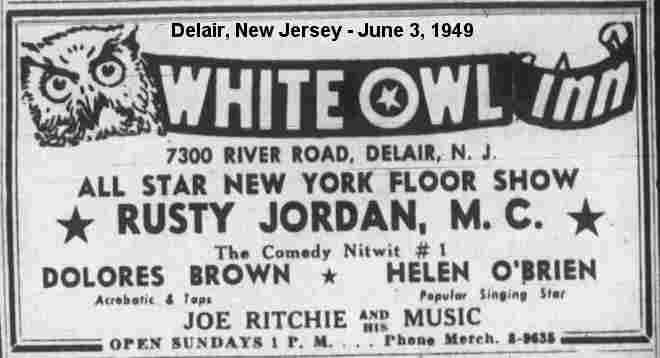 In early December 1950, Dolores was back in Delair, New Jersey, this time at the New Town Tavern.