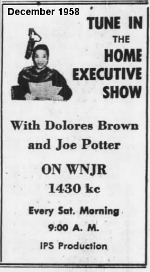 However, her column only lasted through the end of January 1959 and the "Home Executive" radio show was only advertised (Saturday morning at 9:00 AM on WNJR) through January 10, 1959. I never could find any listing for "News Review Of The Week".