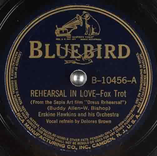 Later in October, Bluebird issued "Rehearsal In Love", from, said the label, the Sepia Art film "Dress Rehearsal". This is a now-lost movie written, produced, and directed by Eddie Green (who played Ko-Ko in Bill Robinson's "Hot Mikado"). According to Mark Cantor (of Celluloid Improvisations), the song was sung under the film's opening titles (but by whom is no longer known.)