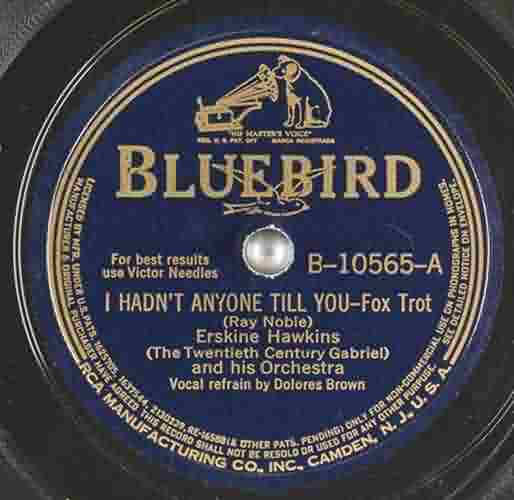 Bluebird issued "I Hadn't Anyone Till You" in January 1940. The record probably came out just in time to be sung at the band's appearance at the Apollo Theater the week of January 19. Advertised were the 3 Peppers, Dolores Brown, Jimmie Mitchell (Hawkins' alto sax and male vocalist). [Note that James Henry "Jimmy" Mitchell's name is inconsistently seen as both "Mitchell" and "Mitchelle" on record labels and in ads (and it was "Mitchelle" in the 1940 census). Both spellings were used often, but "Mitchell" seems to be correct (at least that's the name on his tombstone - he died in 1972).]
