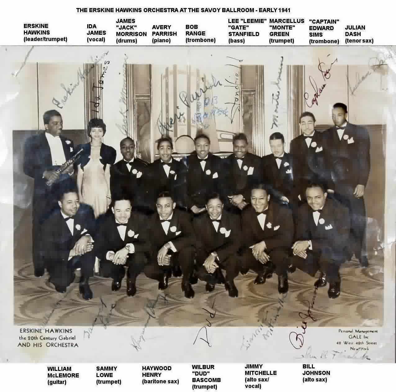 The New York Age of January 4, 1941 reported a reunion: "Ida James has been signed to replace Dolores Brown as the vocalist with Erskine Hawkins' orchestra. Dolores, who replaced Miss James as the band warbler some time ago, has just been married to Marcellus Green of the Hawkins trumpet section, and has left the band to assume the housekeeping duties." Fortunately for Women's Lib, the equivalent article in the Pittsburgh Courier of the same date finished the sentence: "... has left the band to assume housekeeping duties, but at the same time is in the market for a new job."