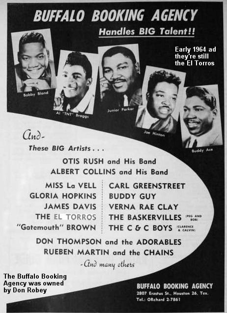 After the session, Don Robey got them to come down to Houston, where Robey's Buffalo Booking Agency got them a lot of work appearing with other acts, including their former "angels", Bobby Bland and Junior Parker. Robey had them stay for several months, opening for other acts at dozens of shows. However, they became disillusioned with Robey when they found that he was micromanaging them and not really giving them any breaks. Although they were tied to a contract with Duke, they returned to St. Louis and opened for many of the big-time acts that appeared in the local clubs there.