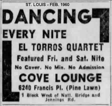 Although there was an active R&B culture flourishing in St. Louis, the only local act to become famous in the 50s was Chuck Berry. (There had been the 4 Vagabonds in the 40s, of course, but they only found success after they had relocated to Chicago.) There were many local groups (the Trojans/Rockers, the Gardenias, the Emeralds, the Mellards, the Swans, the Ebon-Knights, the 5 Masqueraders), but none of them achieved any measure of success. They are therefore mostly unknown outside of St. Louis. This is the story of one of them: the El Torros.