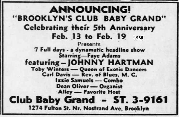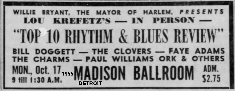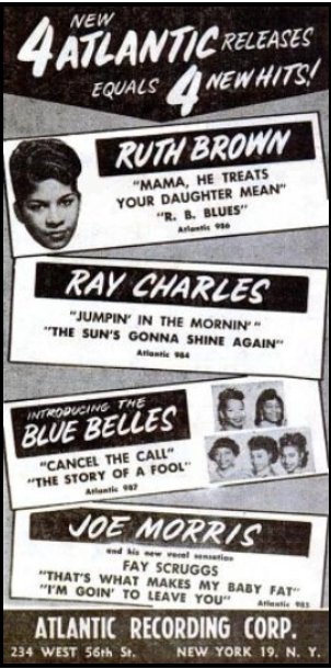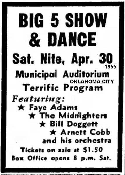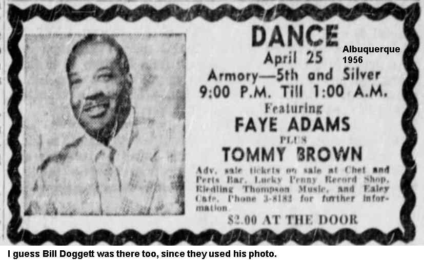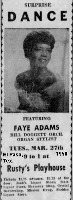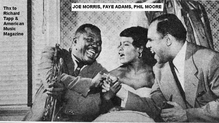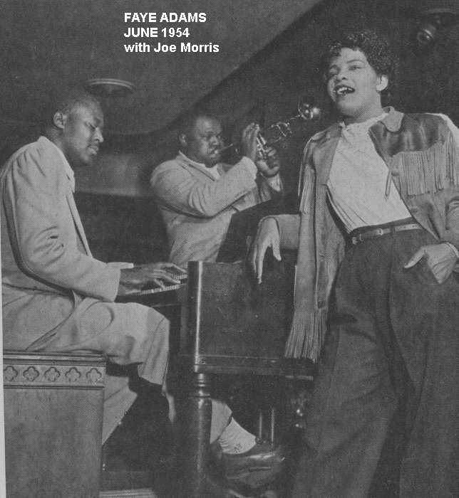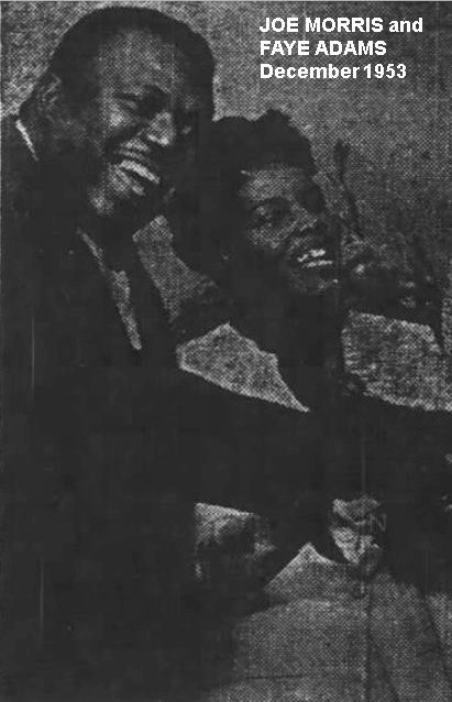 The August 14 Pittsburgh Courier said: "Faye Adams says she is just about fed up with Joe Morris and his group and after a brief tour as a single will go out in the fall with Bill Doggett for musical backing." Actually, by the time that was printed, she'd already left Morris (appearing alone on that "Biggest Rhythm And Blues Show"). Joe would replace her with Ursula Reed.