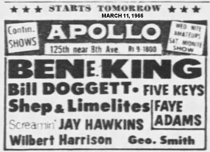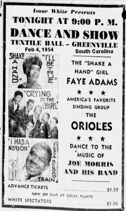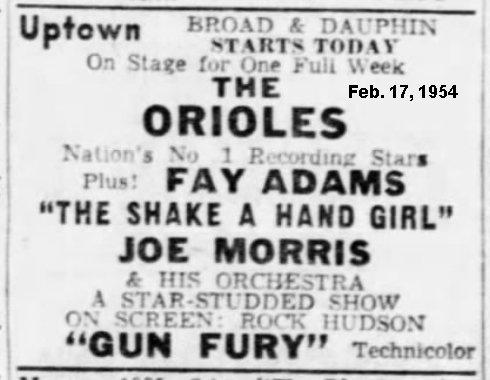 From there, they went to Textile Hall in Greenville, South Carolina, appearing with the Orioles in early February. On February 17, both acts were at Philadelphia's Uptown Theater for a week.