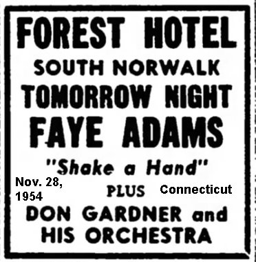 On November 28, 1954, she appeared at the Forest Hotel in South Norwalk, Connecticut along with Don Gardner and his orchestra. At the time, Phil Moore was still her manager.