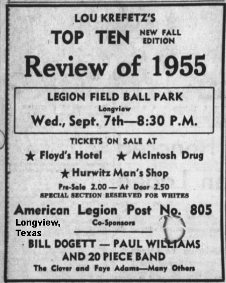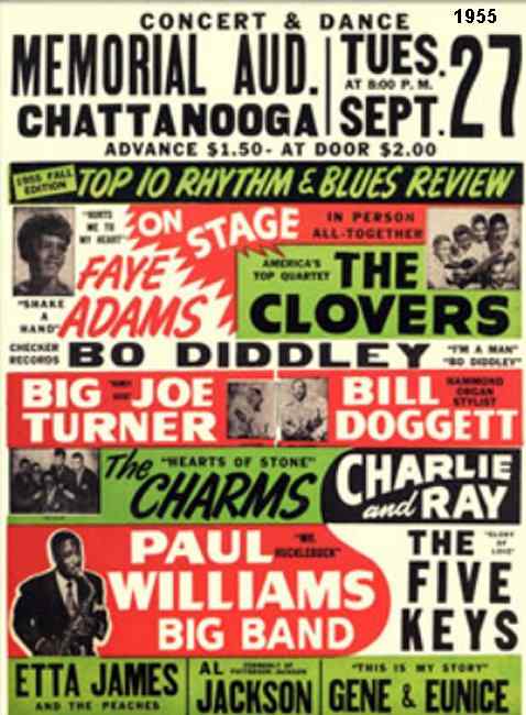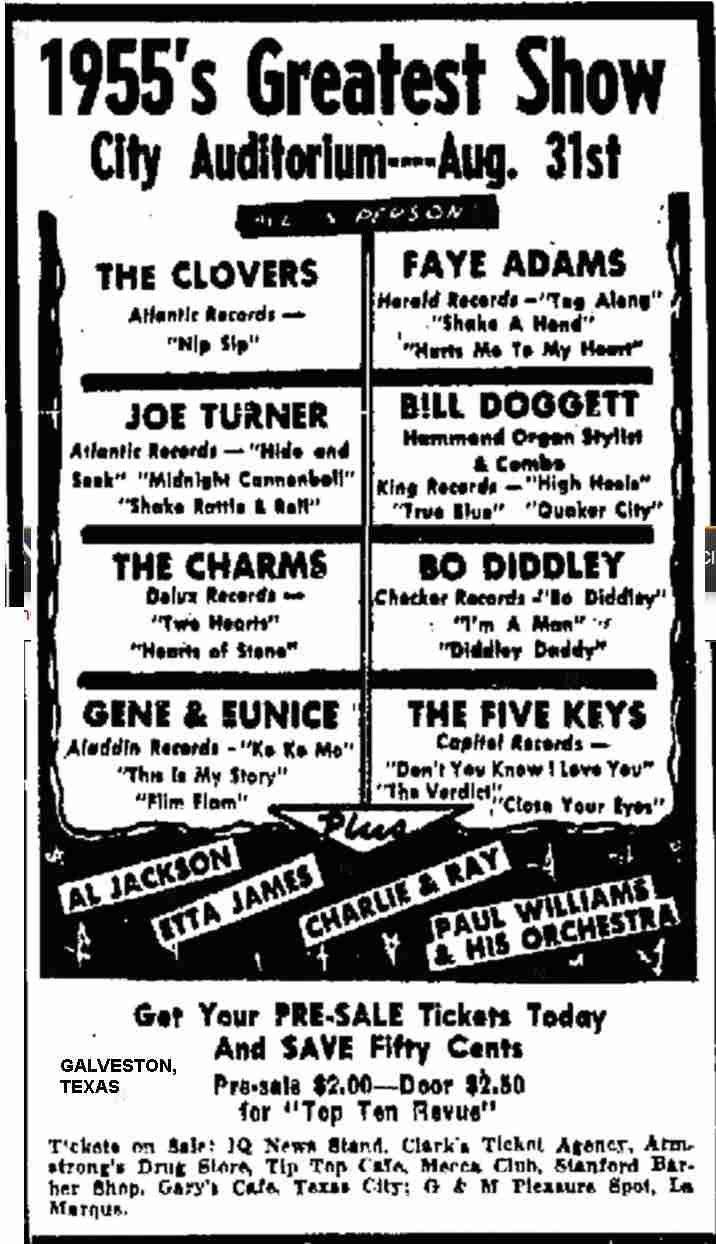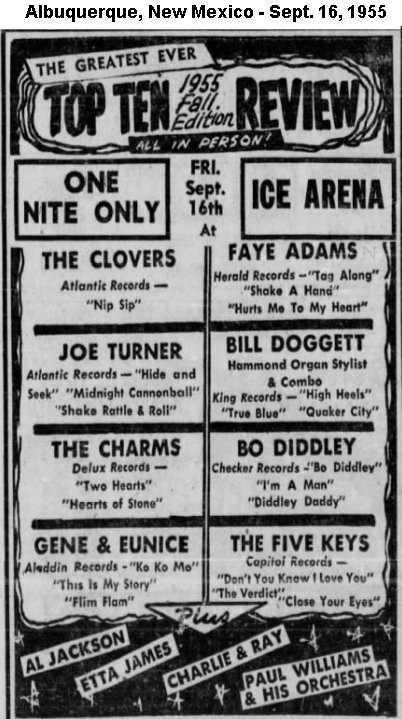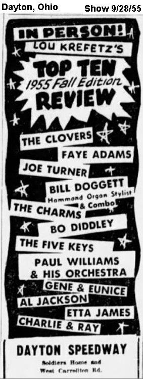 On January 28, 1955, Faye became part of another big touring show: the Shaw Agency's "Top 10 R&B Show", kicking off in Norfolk, Virginia. It also starred the Clovers, Fats Domino, Big Joe Turner, the Moonglows, Amos Milburn, Charlie & Ray, the Bill Doggett Trio, the Charms, Lowell Fulson, the Spence Twins, comedian Al Jackson, and the Paul Williams orchestra (and, at least on the opening date, Joe Morris was there too). It was produced by Lou Krefetz, manager of the Clovers. However, some were worried, because no one on the tour had a huge current hit, unlike Roy Hamilton in the prior year's package.