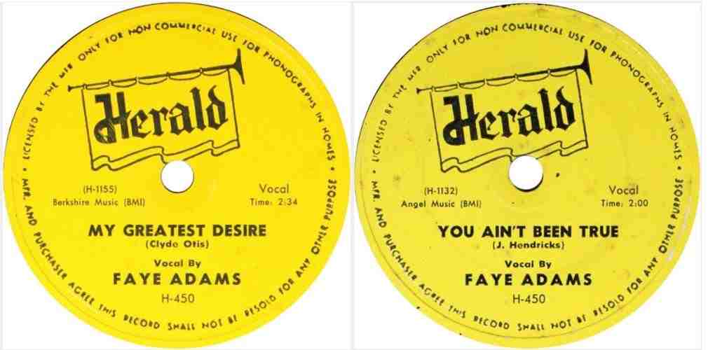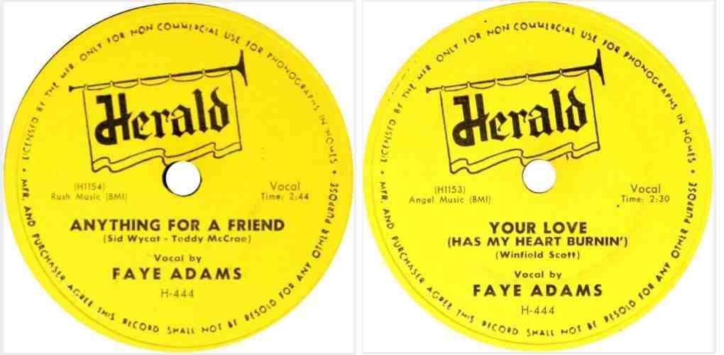 Herald wasn't amused at a competing Faye Adams record and threatened to bring suit against Atlantic. The New York Age of September 19, 1953 reported: