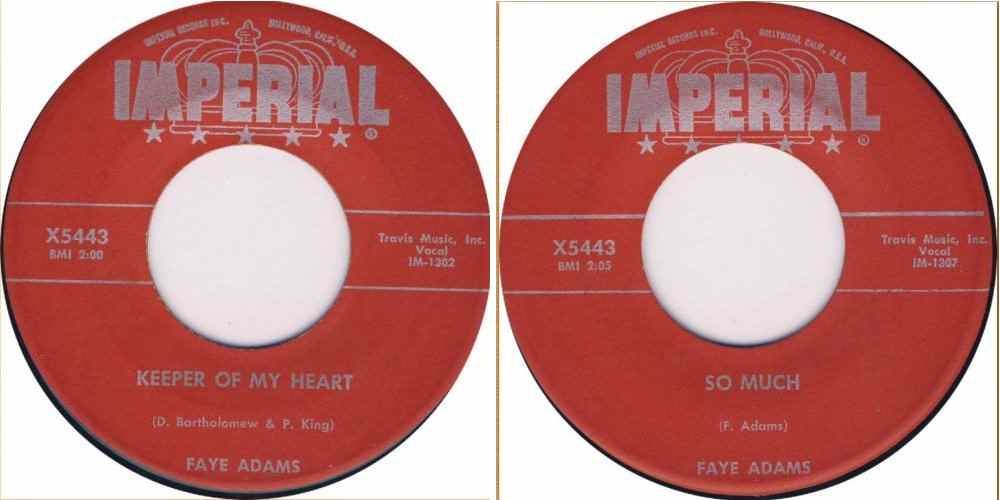 But, as promised, "Shake A Hand", backed with "I've Gotta Leave You" was released in July 1953. Also as promised, gone was "Faye Scruggs"; thanks to Phil Moore, we now present "Faye Adams". The August 15 Billboard said of "Shake A Hand": "There's very good action already reported from Philadelphia, Cleveland and Durham on this side."