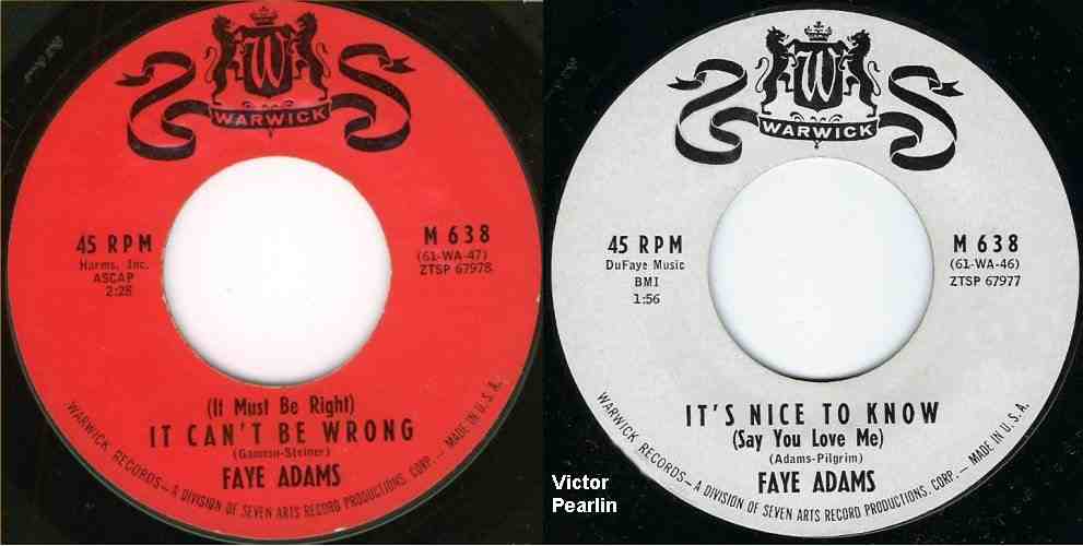 ATLANTIC Joe Morris Ork (as Faye Adams, to capitalize on "Shake A Hand")