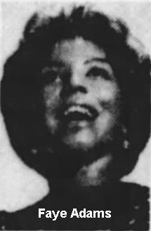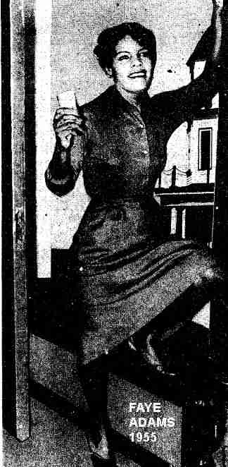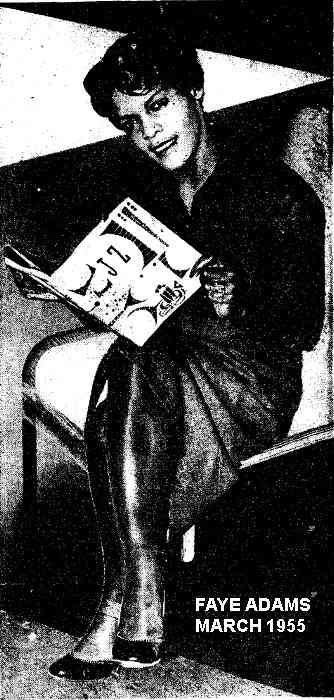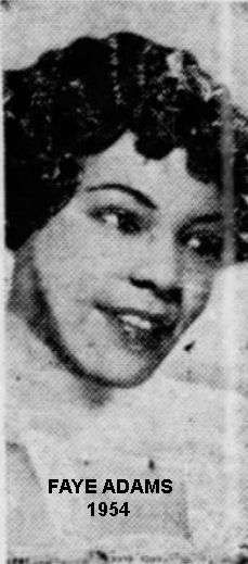 Twenty-odd years ago, a cute five-year-old with her two older sisters was the singing delight of followers of religious music all over the eastern seaboard. She was then known as Faye Tuell, and since that time her name and her singing style have changed several times. Today she is Faye Adams with a record listed in the top 10 in the nation and a future which promises to be sensational.