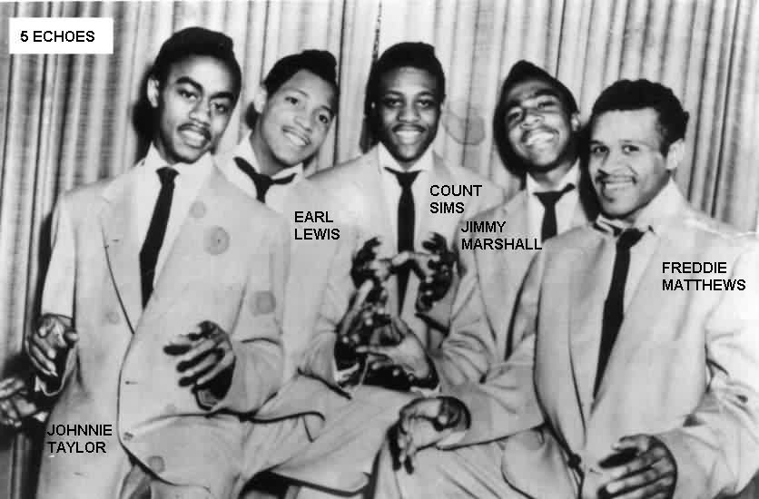 Since Weatherspoon was going to attend a party to hear the Swallows, he decided to bring Sollie along. The Swallows sang; Sollie started harmonizing with them; Weatherspoon decided to manage them; and the guys decided that Sollie would fit their needs better than Earl Lewis. Not a bad night's work. [Earl subsequently ended up in the 5 Echoes (recording for Sabre and Vee-Jay), along with future Flamingo Tommy Hunt and future Disco legend Johnnie Taylor.]