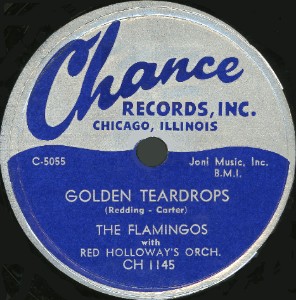 Also in August, the Flamingos held their second Chance session (although the exact date is unknown). This time they recorded three songs led by Sollie: "Carried Away", "You Ain't Ready", and the incomparable "Golden Teardrops". A fourth song, "Plan For Love", was led by Johnny Carter.