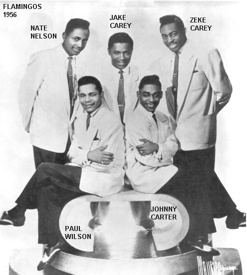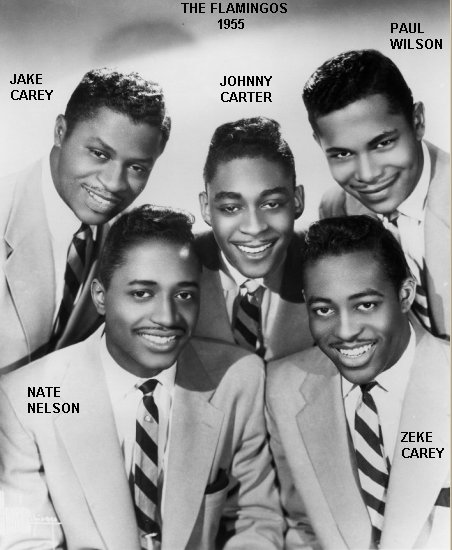 [Note that for as long as we've known about the Flamingos, we've "known" that Jake and Zeke Carey were cousins. However, they weren't really cousins and actually weren't even directly related at all! The Careys lived in Baltimore (down the street from Sonny Til), and Zeke was taken in and raised by Jake's uncle and aunt. He adopted the Carey name and from that time on they'd always refer to each other as "cousin".]