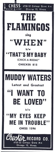 Actually, Chess was doing a little more than just hedging bets. While Johnny Carter reported to the army on September 19, he would have gotten his draft notice at least a month before that. With Zeke gone and Johnny going, Nate appeared, on September 1, as "Nate Nelson of the Flamingo's [sic]" at a "Jam With Sam" [Evans] show at Chicago's Trianon Ballroom. Others on the bill were Ray Charles, Chuck Willis, J.B. Lenoir, Jimmy Binkley, and the Calvaes. It's unknown whether this was a one-shot deal or an attempt at a solo career, but Nate was soon back with the Flamingos as the ink dried on his Chess contract.