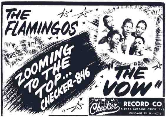 The Flamingos were now a quartet: Nate Nelson (first tenor), Tommy Hunt (second tenor), Paul Wilson (baritone), and Jake Carey (bass). But Leonard Chess, owner of Checker, was getting nervous. Two of the stalwarts of the Flamingos were gone. Would the group break up? To hedge his bets, he signed Nate Nelson to a separate contract. This was to have serious repercussions later on.