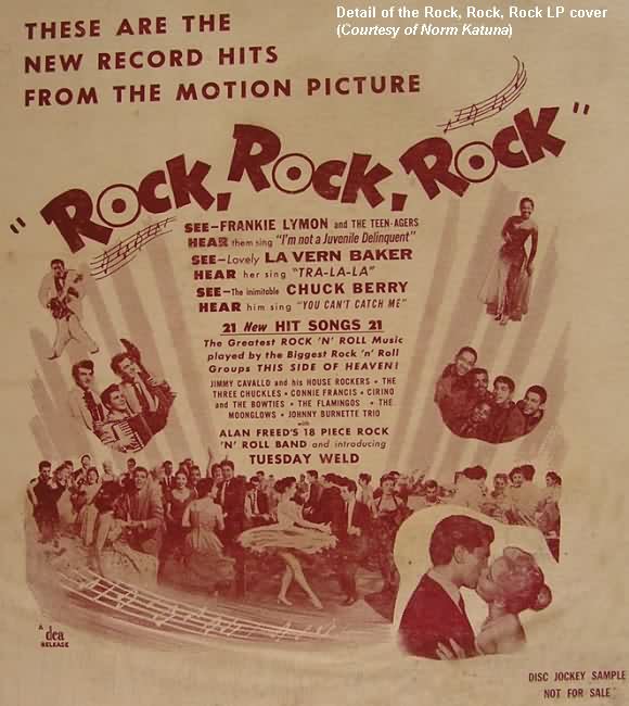 Rock, Rock, Rock finally opened on December 5, 1956. I don't know what the reviewers at the time thought of it, but I loved it, as did all my friends. It stands the test of time: we got to see Alan Freed, the Flamingos, the Moonglows, the Teenagers, and Chuck Berry. We got to hear Connie Francis sing (although no one had ever heard of her at that point, and I'm not sure her name was even in the credits originally). We got to see a teenaged Valerie Harper (in the audience "watching" the New York-filmed Teenagers perform, although I'm sure that audience was filmed in California). We got to see Teddy Randazzo's jacket magically closing and opening as various takes were stitched together. Was the plot stupid? What plot? Was there a plot? Did we care? Do we care now? Come on, let's not kid ourselves, we weren't expecting a musical version of Hamlet; we were ecstatically happy with what we got.