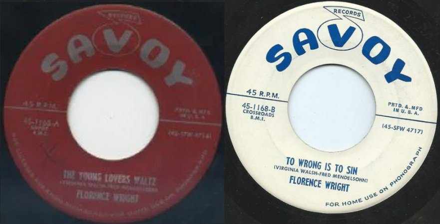The Young Lovers Waltz (CB; B): Florence Wright debuts [sic] on the Savoy label with a wonderfully tender "Tennessee Waltz" type ballad. Lovely song. Thrush can sing. Disk has possibilities.