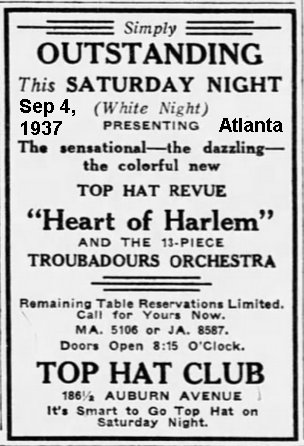 Gene somehow ended up in Atlanta in 1937, as part of a 13-piece band called the Troubadours. There were a couple of ads for them at the Top Hat Club (from September 4 to October 8), but no members were mentioned.