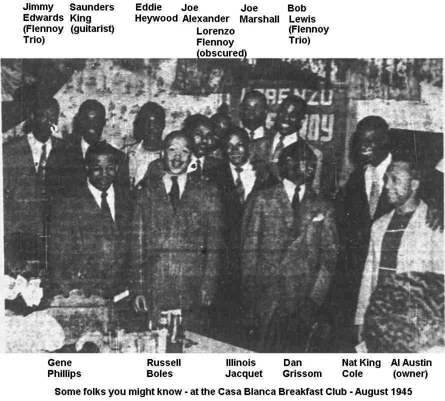 The California Eagle of July 26 treated us to one of those blurbs that say nothing: "One of the regular patrons of Al Austin's Casa Blanca is Gene Phillips, who formerly played the electric guitar with the Flennoy Trio at that spot. Gene formed his own Combo and is now playing out Hollywood way." Does that tell you enough so that I don't have to bother finishing this article? It doesn't? Drat; now I have to keep digging.