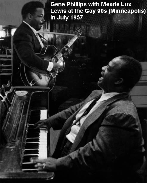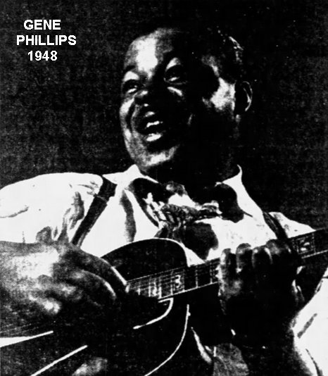 On September 10, 1946 Gene was part of a Lloyd Glenn Aladdin session. The musicians were: Lloyd Glenn (piano), Henry Hayes (alto sax), Gene Phillips (guitar), Herman Washington (bass), and Willie Threats (vocal). The two songs I know about were: