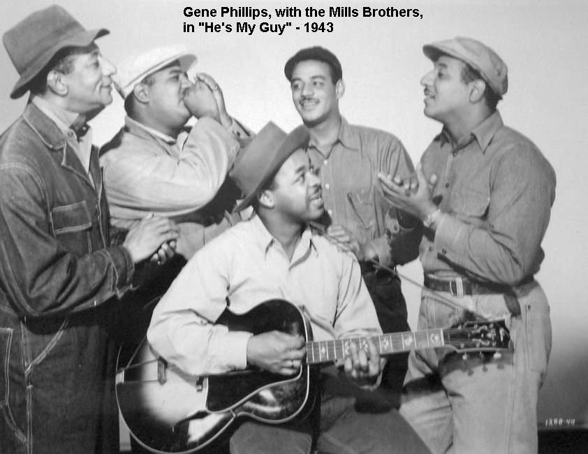Supposedly, sometime in 1941, Gene joined the Mills Brothers, replacing their regular guitarist, Allen Norman Brown, who'd been drafted. However (why is there always a "however"?), that isn't right. The February 28, 1942 Pittsburgh Courier had this: "Norman Brown, guitar accompanist to the Mills Bros. entered the army via Fort Dix Tuesday." Notice that it didn't say "ex-guitarist" or "former guitarist"; he was there right up to the time he was inducted. [Note that liner notes say that Gene replaced guitarist Bob Marks; no one by that name was ever associated with the Mills Brothers.]
