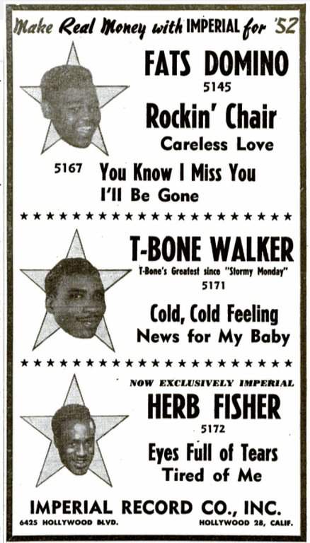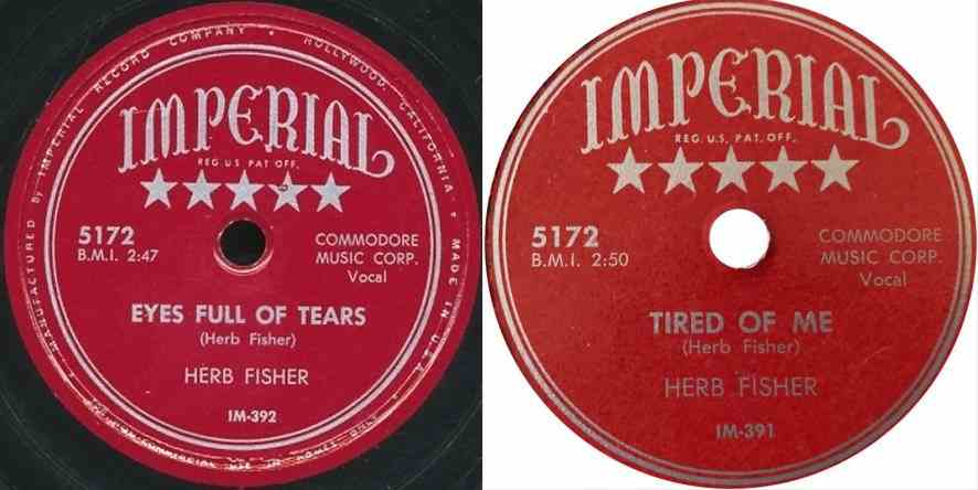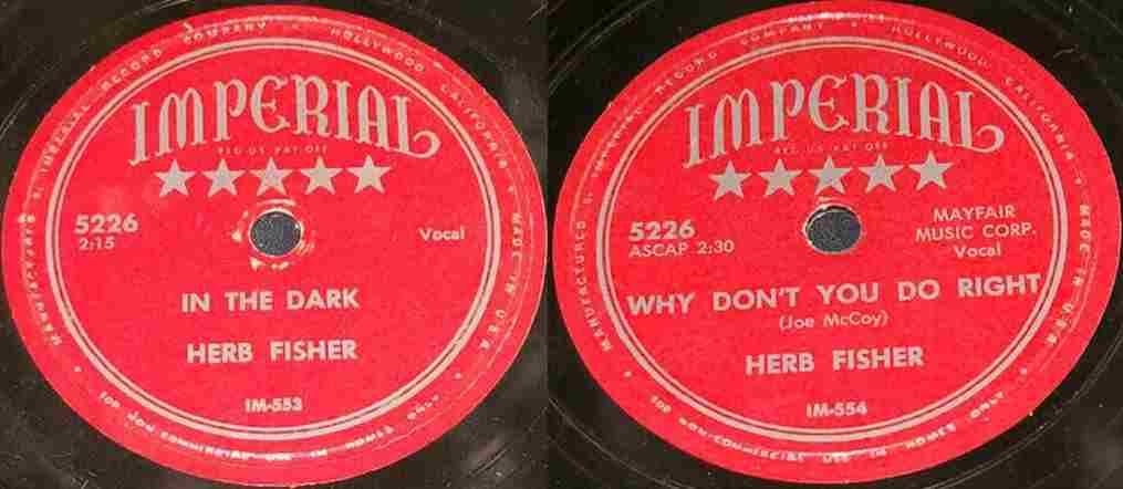 Blues singer Herb Fisher has been signed by Imperial Records, and his first release under this label was made in record-breaking time. He had a session on Friday, and Monday his records were ready for national distribution. Imperial feels that Herb is just that much of a potential moneymaker.