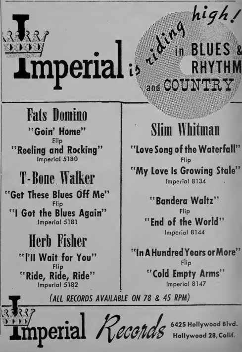 Imperial issued the first two of those in March 1953 and the other two in July. The second disc was reviewed in the August 15 Billboard: